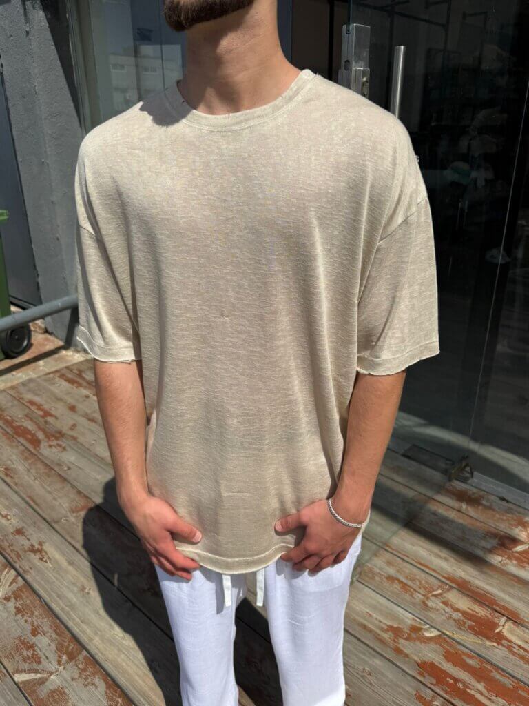 חולצה פשתן אובר סייז – בז'
