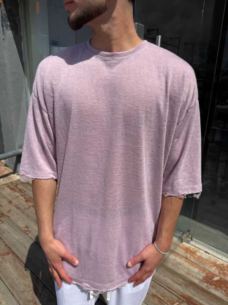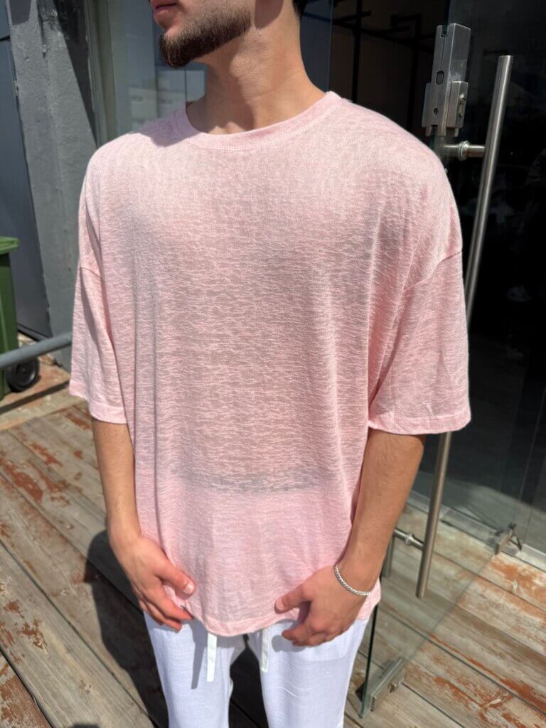 חולצה פשתן אובר סייז – ורוד