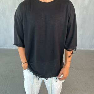 חולצה פשתן אובר סייז – שחור