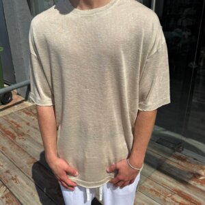 חולצה פשתן אובר סייז – בז'
