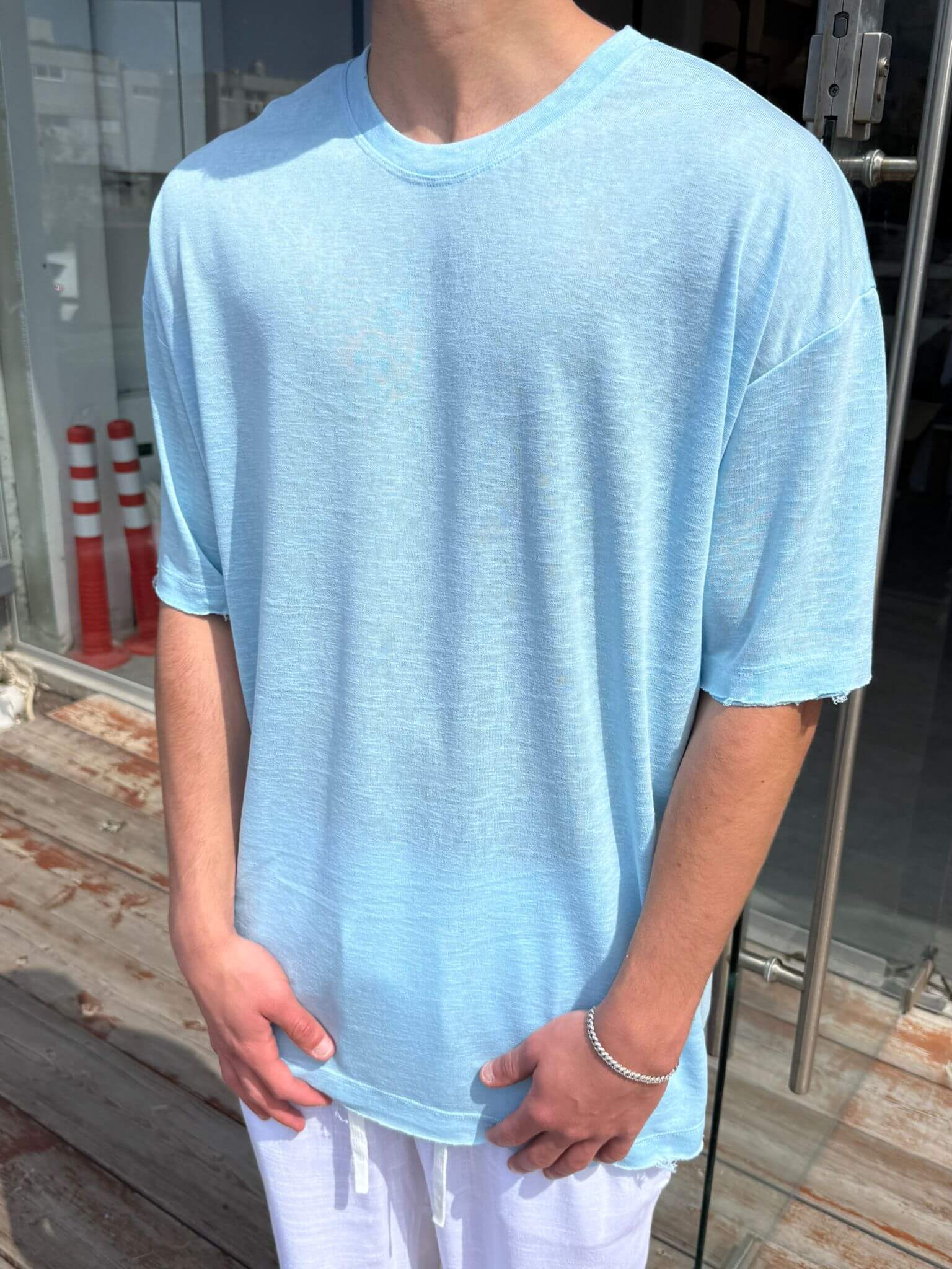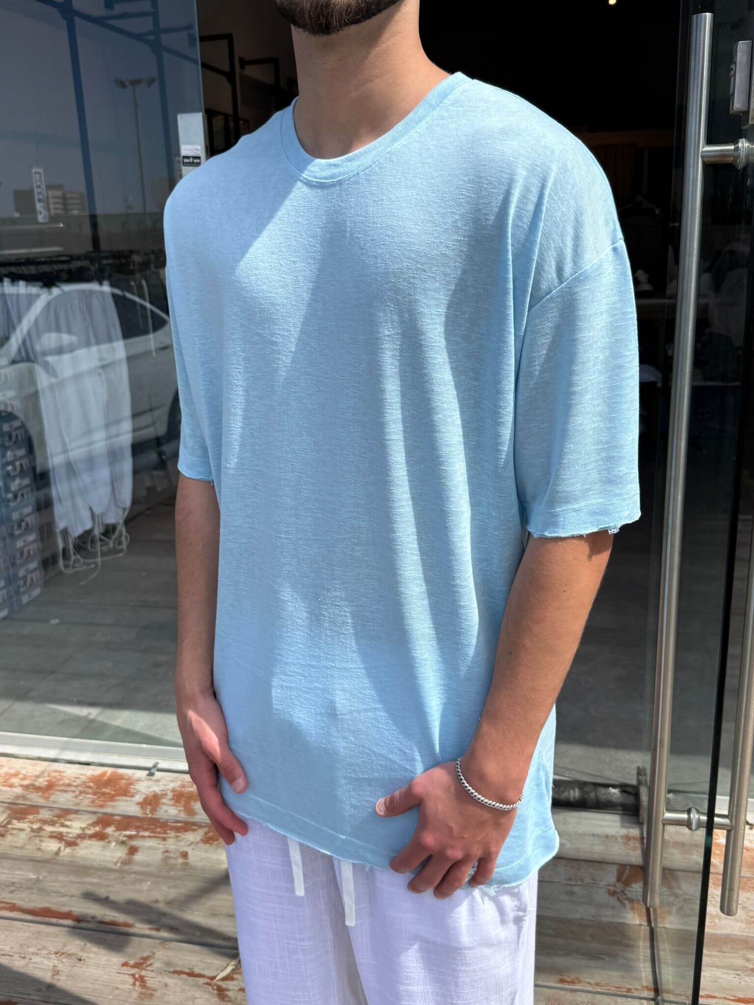 חולצה פשתן אובר סייז - תכלת בהיר