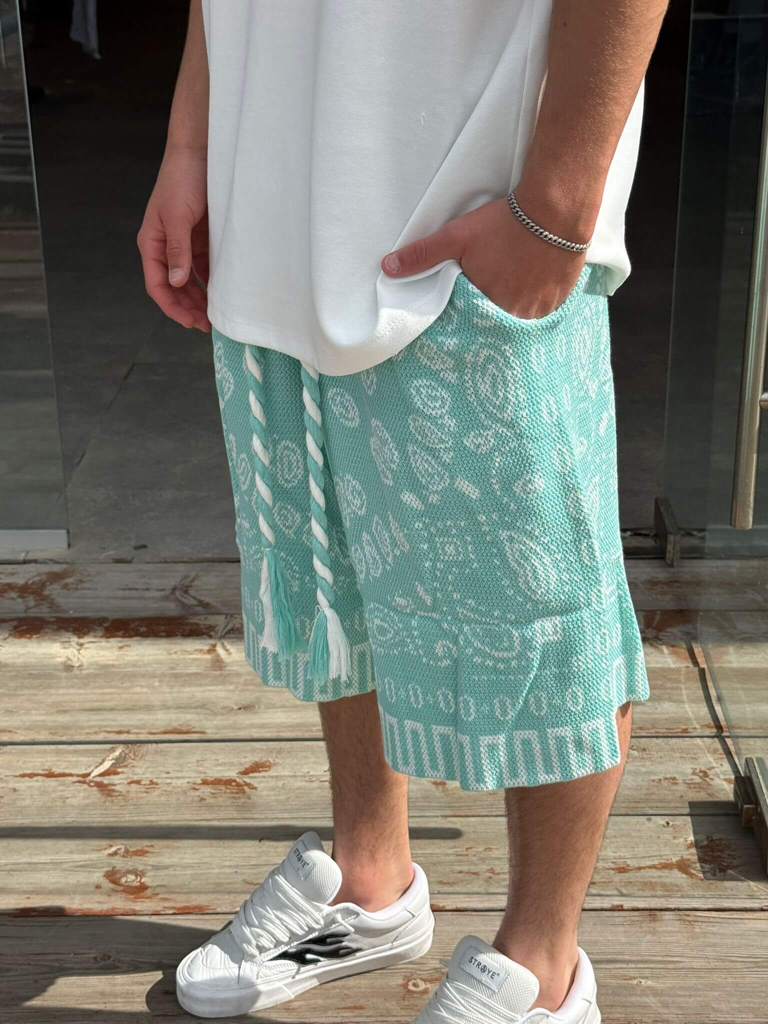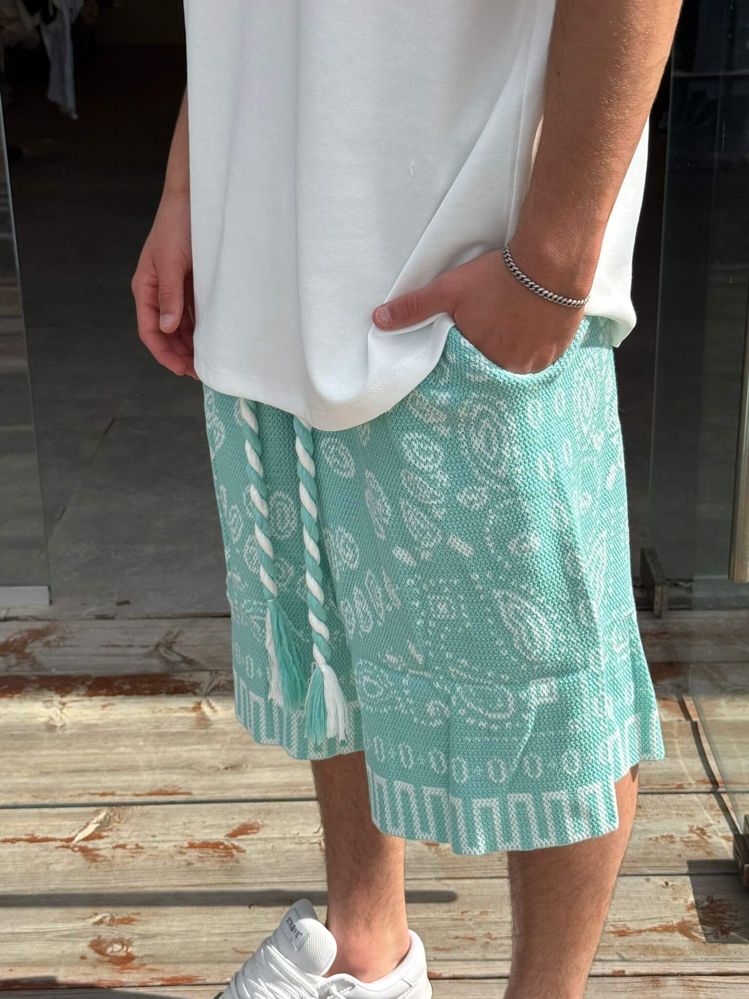 מכנס סריג בנדנה לבן