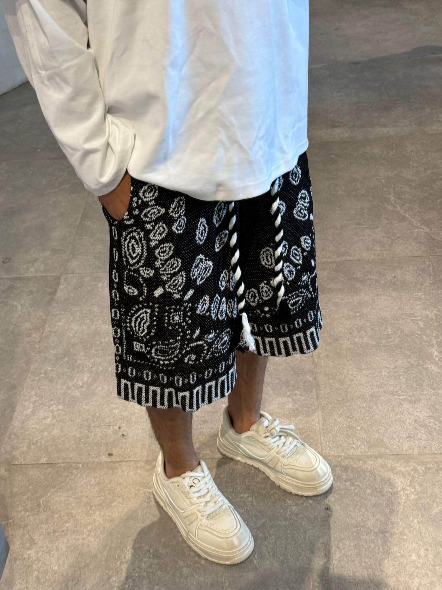 מכנס סריג בנדנה לבן