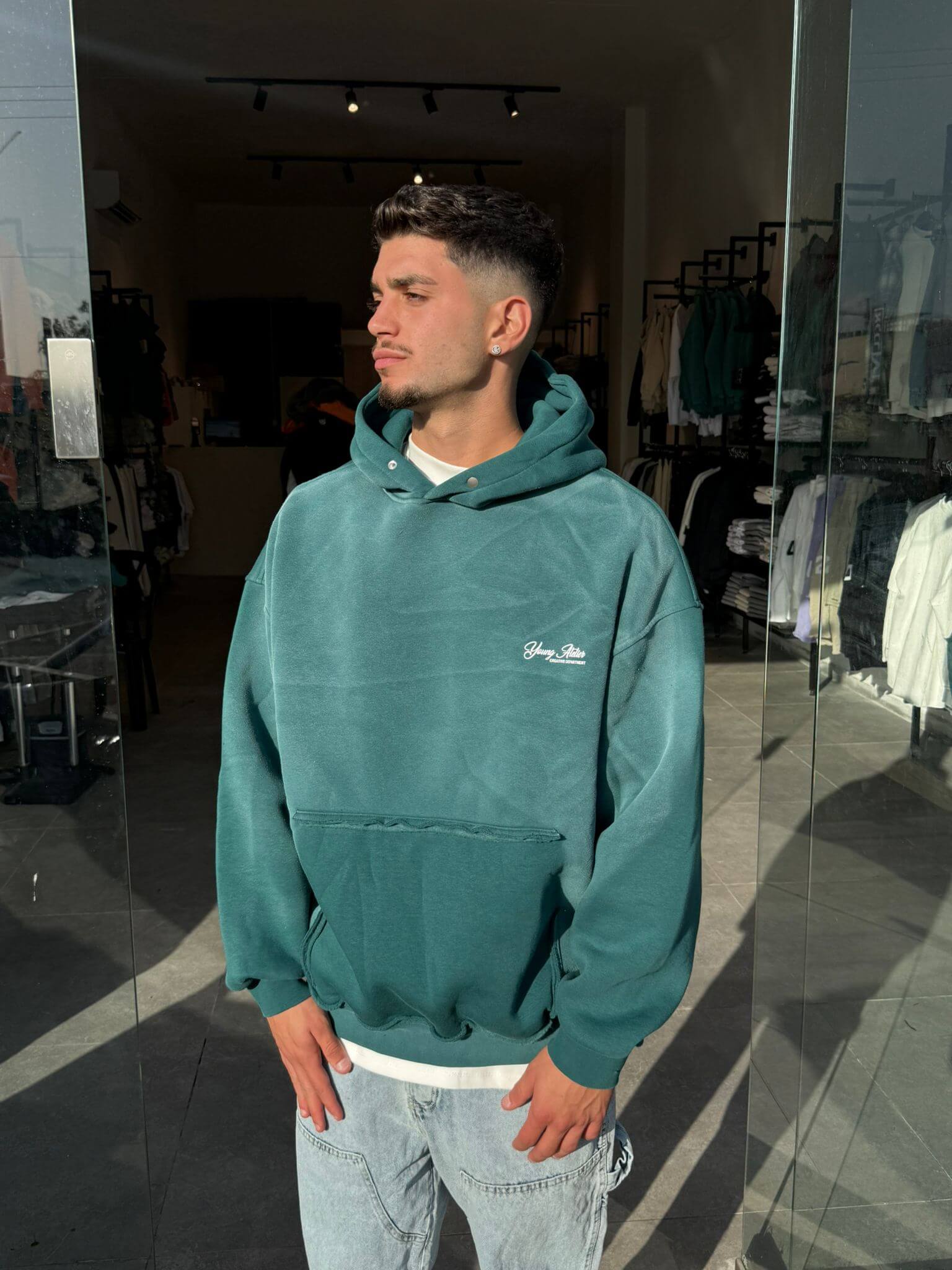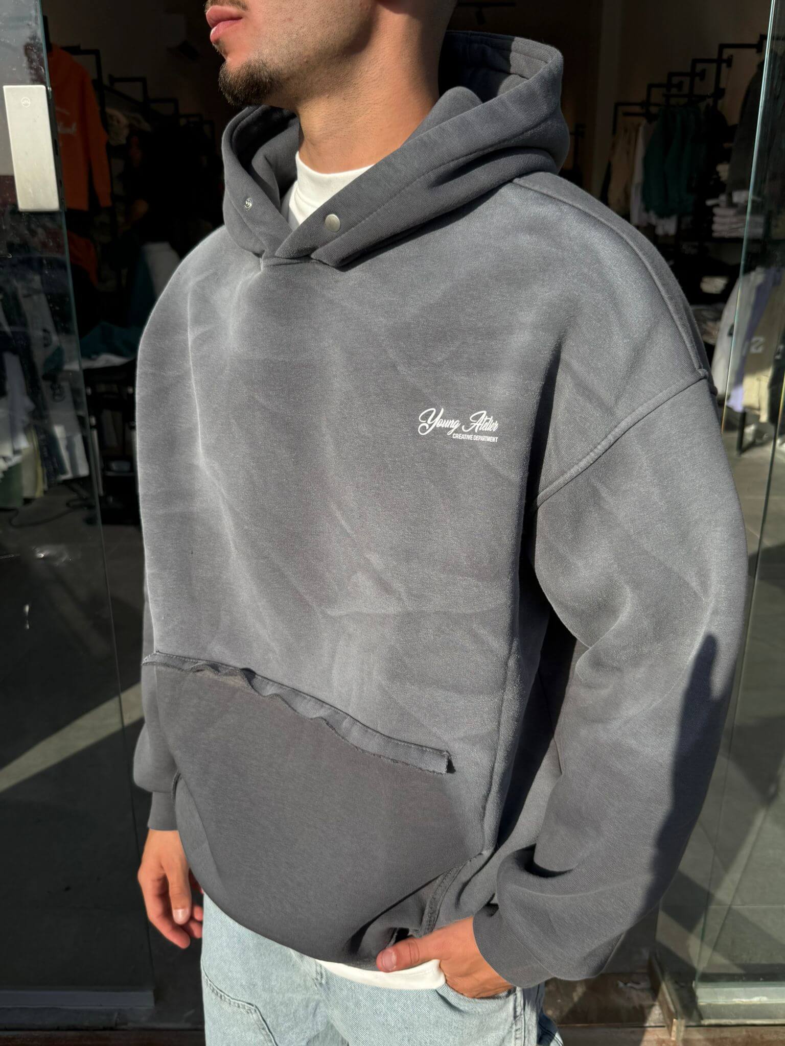 קפוצון וואש אפור כיס קרוע