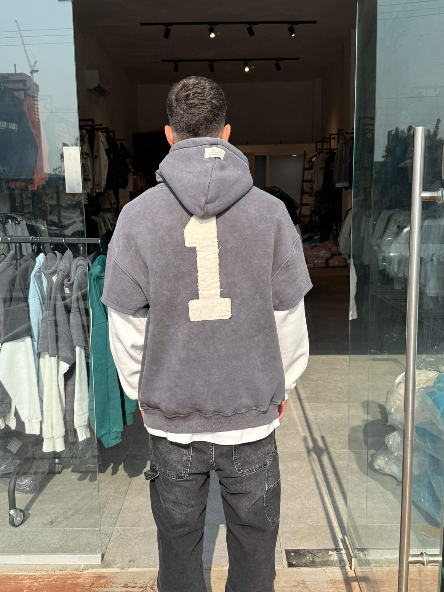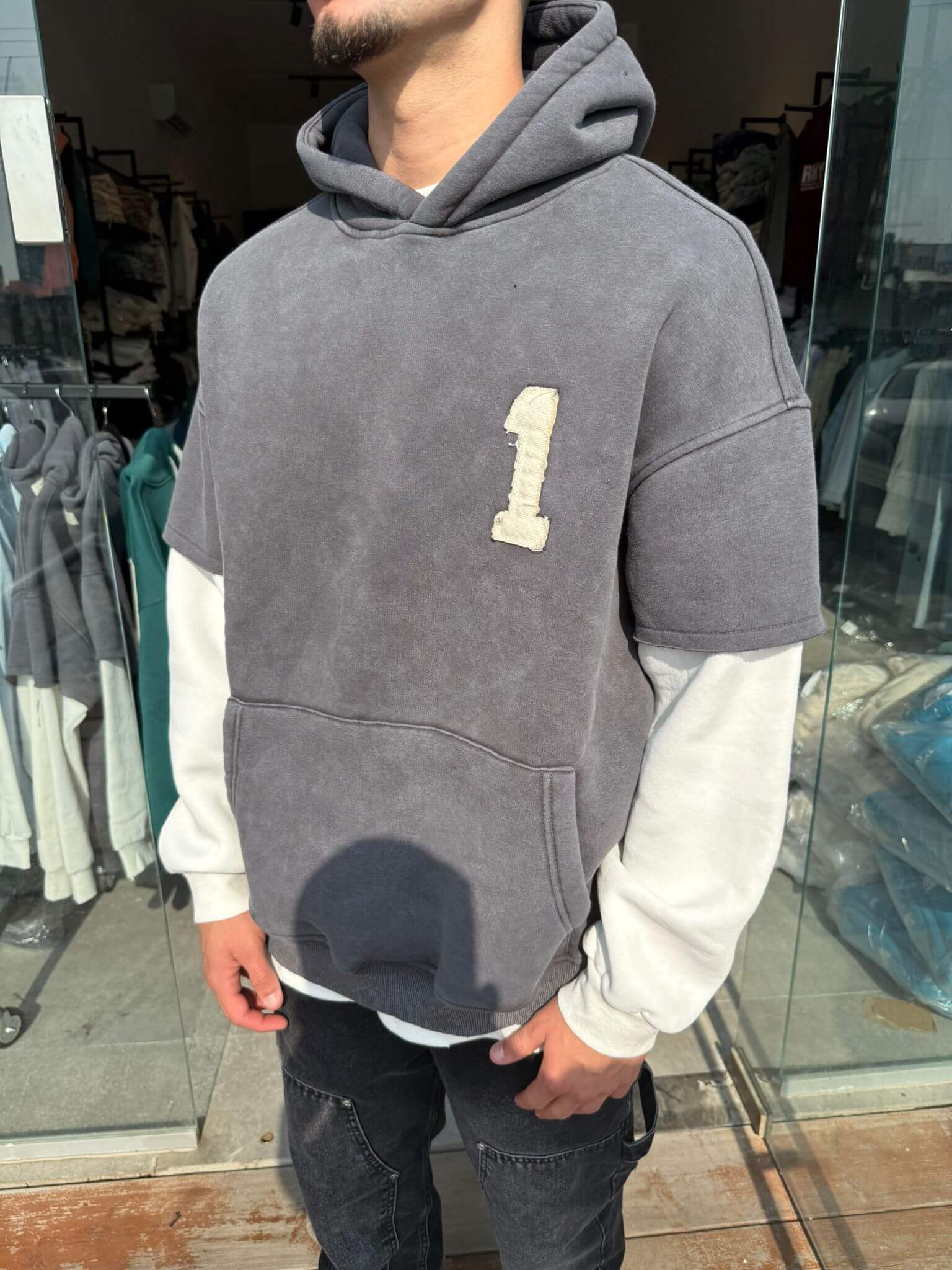 קפוצון וואש שרוול כפול 1 אפור