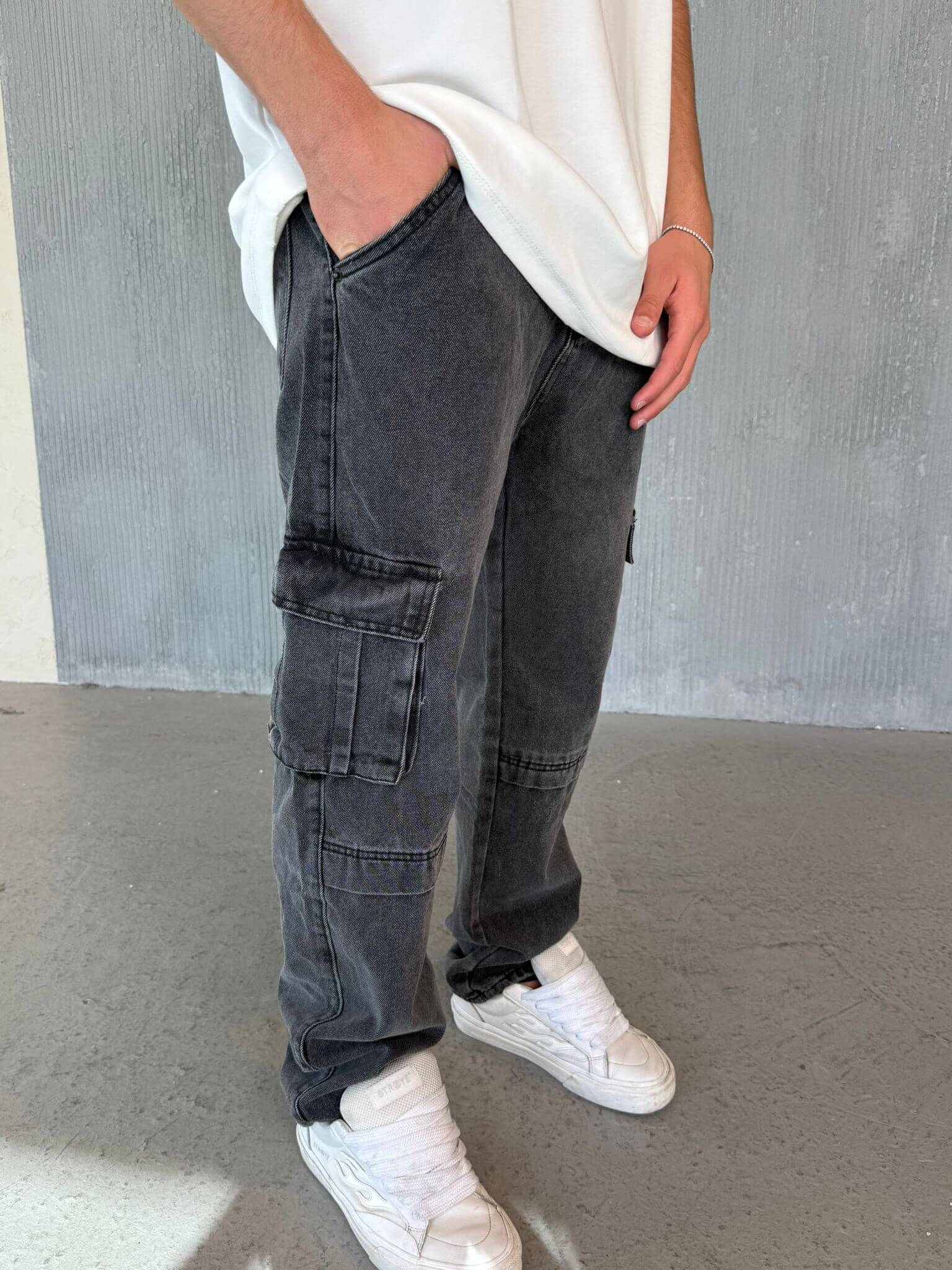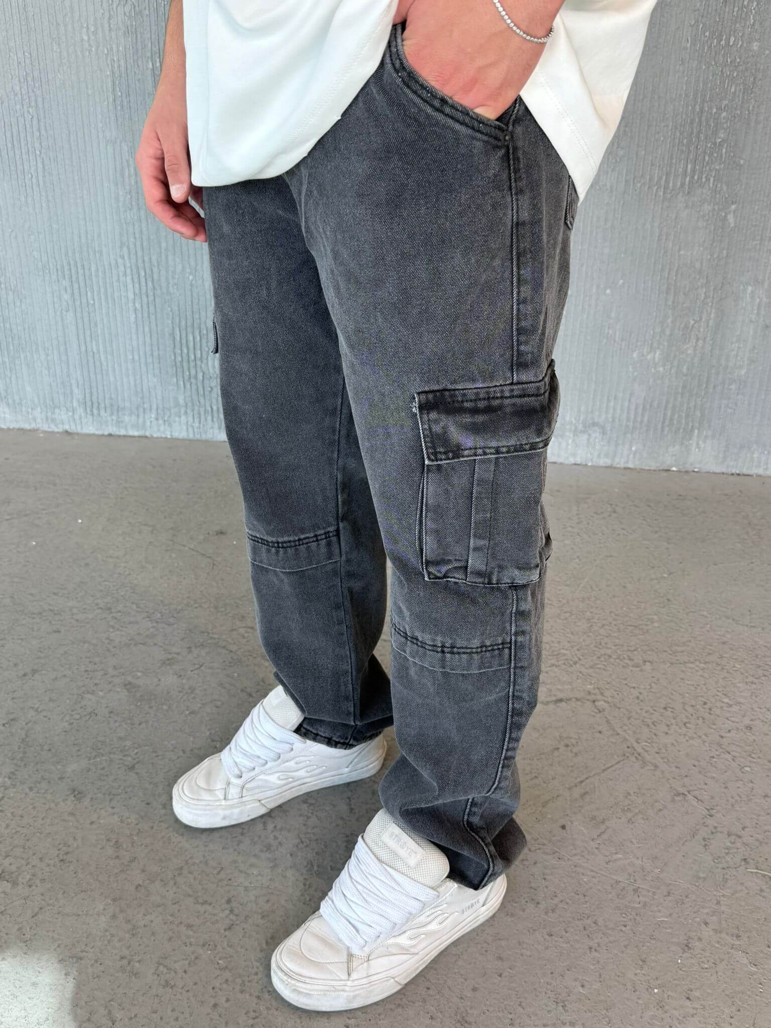 Baggy jeans דגמח גינס אפור כהה משופשף quantity